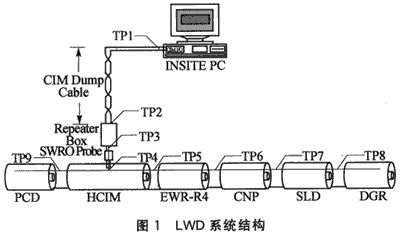 井下系統(tǒng)包括:總線控制器(HCIM)、隨鉆自然伽馬測(cè)量?jī)x(DGR)、隨鉆電阻率測(cè)量?jī)x(EWR)、隨鉆中子傳感器(CNP)、隨鉆巖石密度傳感器(SLD)、工具串振動(dòng)傳感器(DDS)、探管(PCD)。