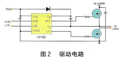 電機(jī)的PWM驅(qū)動(dòng)電路如圖2所示。本電路中,無(wú)刷直流電機(jī)采用全橋驅(qū)動(dòng),這樣可以使用電機(jī)工作于四象限(正向驅(qū)動(dòng)、制動(dòng)及反向驅(qū)動(dòng)、制動(dòng))。驅(qū)動(dòng)一個(gè)無(wú)刷直流電機(jī)需要6路PWM信號(hào),而MotionChip的每個(gè)事件管理模塊(EV)中3個(gè)帶可編程死區(qū)控制的比較單元可以產(chǎn)生獨(dú)立的3對(duì)共6路PWM 信號(hào)。所以在電路中,直接選用事件管理模塊B(EVB)中的比較單元來(lái)產(chǎn)生6路所需要的PWM信號(hào),其輸出引腳為PWM7~PWM12,其中 PWM7~PWM9輸出設(shè)為驅(qū)動(dòng)MOSFET功率管橋路的上半橋,PWM10~PWM12輸出驅(qū)動(dòng)下半橋。DSP輸出的這兩種3路PWM信號(hào)經(jīng)過(guò) IR2102前置放大后分別驅(qū)動(dòng)MOSFET功率管橋路的上半橋(Q1,Q3,Q5)和下半橋(Q2,Q4,Q6)進(jìn)行電機(jī)的驅(qū)動(dòng)。