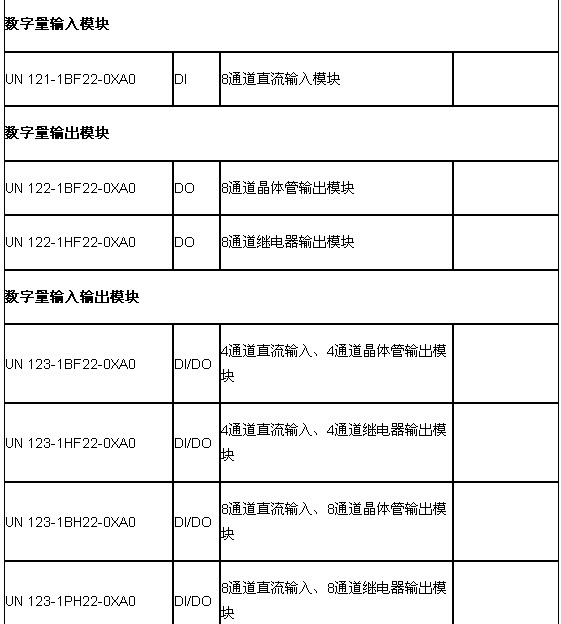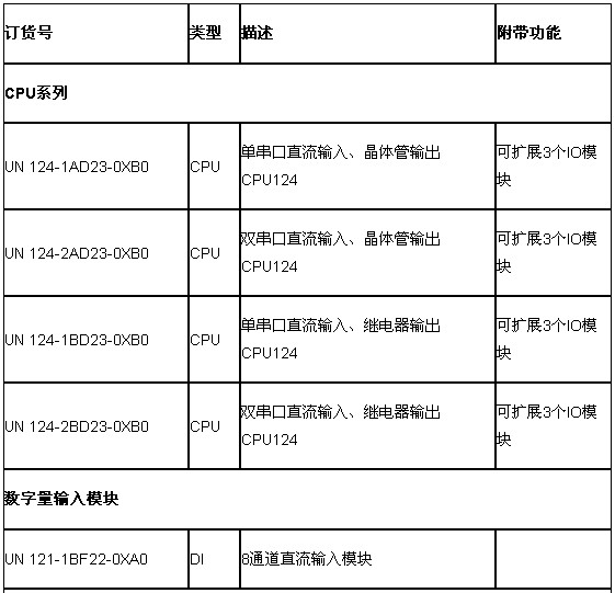 該系列PLC目前包括4款CPU模塊,7款數(shù)字量模塊,5款模擬量模塊,2個(gè)溫度采集模塊,附配件和UN200PLC通用。