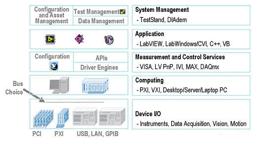 圖2. NI公司提供了一套完整的、用于設(shè)計自動化測試系統(tǒng)的軟硬件解決方案