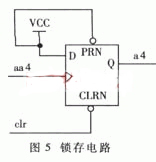 如果多路脈沖信號有重疊,例如有兩路信號發(fā)生重疊,而中斷信號只有在四路都為低時才會產(chǎn)生,因此需要對信號進行鎖存。本設(shè)計采用D觸發(fā)器來實現(xiàn)鎖存,電路如圖5所示。