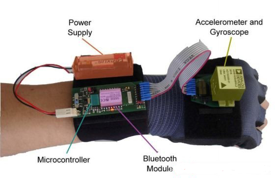 卡爾斯魯厄理工學(xué)院認(rèn)知系統(tǒng)實(shí)驗(yàn)室(Cognitive Systems Lab)的一個團(tuán)隊(duì)將普通的針織手套中置入了慣性傳感器、加速計(jì)、陀螺儀等先進(jìn)儀器,一旦有人戴著它在空中比劃某些英文字母、單詞甚至是句子,這套系統(tǒng)都可以輕松識別出來。