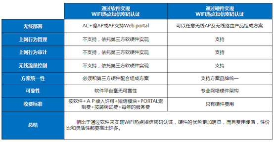 目前主流的實(shí)現(xiàn)WiFi熱點(diǎn)短信密碼認(rèn)證的方法有兩種:一種是通過(guò)軟件來(lái)實(shí)現(xiàn),一種是通過(guò)硬件來(lái)實(shí)現(xiàn)。