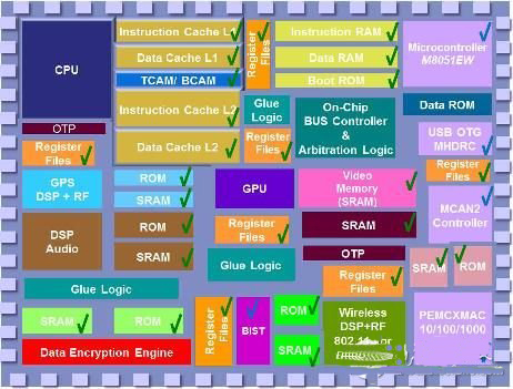 圖2:多核心SoC的各種嵌入式存儲器IP
