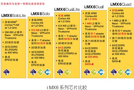 經(jīng)過(guò)i.MX31處理器(基于ARM11處理器內(nèi)核)、i.MX35、i.MX37、i.MX50(基于ARM Cortex-A8內(nèi)核)、i.MX51、i.MX53等系列多媒體處理器的持續(xù)演進(jìn),飛思卡爾的多媒體處理器在市場(chǎng)上備受美譽(yù)。之后,飛思卡爾再接再厲,又重磅推出i.MX6系列。
