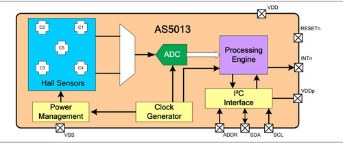 AS5013非接觸式磁性編碼器IC現(xiàn)已供貨。