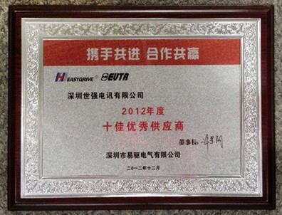 專注于工控系統(tǒng)集成領(lǐng)域(變頻器)的深圳市易驅(qū)電氣為答謝各供應(yīng)商合作伙伴對(duì)于易驅(qū)的支持特舉辦了“2013迎新春文藝晚會(huì)”暨"十佳供應(yīng)商"頒獎(jiǎng)儀式。儀式上世強(qiáng)憑借在產(chǎn)品品質(zhì)、技術(shù)服務(wù)能力、供貨能力方面的突出實(shí)力以及不容置疑的行業(yè)領(lǐng)先地位,獲評(píng)“2012年度十佳優(yōu)秀供應(yīng)商”,易驅(qū)電氣總經(jīng)理朱華東先生親自向世強(qiáng)業(yè)務(wù)代表頒發(fā)了獎(jiǎng)牌。