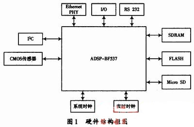 在本設(shè)計(jì)中,相機(jī)采用了ADI公司的ADSP-BF537作為控制核心。ADSP-BF537是具有較高性能的系列成員,擁有容量更大的嵌入式存儲(chǔ)器,從而可滿足諸如視頻安全/監(jiān)控和基于工業(yè)環(huán)境的分布式控制/工廠自動(dòng)化應(yīng)用等嵌入式應(yīng)用的較高吞吐量需求。ADSP-BF537提供了卓越的性能,并專為諸如遠(yuǎn)程監(jiān)視設(shè)備、VoIP、銷售點(diǎn)終端以及生物特征識(shí)別/安全應(yīng)用等低成本連接設(shè)備而設(shè)計(jì)。作為整個(gè)系統(tǒng)的核心,ADSP-BF537具有接口豐富,性能優(yōu)良,價(jià)格便宜的特點(diǎn),并具有強(qiáng)大的多媒體數(shù)據(jù)處理能力。