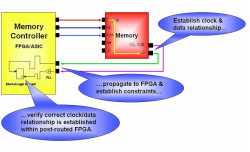 DDR或四倍數(shù)據(jù)速率(QDR)存儲(chǔ)設(shè)備可以提供和接受兩倍于器件時(shí)鐘頻率的源同步數(shù)據(jù),這意味著數(shù)據(jù)在時(shí)鐘的上升緣和下降緣傳輸。此外,需要捕捉時(shí)鐘偏移調(diào)整,以確保適當(dāng)?shù)臅r(shí)鐘與數(shù)據(jù)關(guān)系。如前所述,現(xiàn)在一些FPGA裝置包括DDR接口的I/O單元和板上的PLL網(wǎng)絡(luò)。這意味著,你必須有一個(gè)方式來控制模塊的準(zhǔn)確和可靠。為了說明這一點(diǎn),讓我們來讀取QDR II SRAM源同步接口的設(shè)計(jì)要求看看實(shí)例。