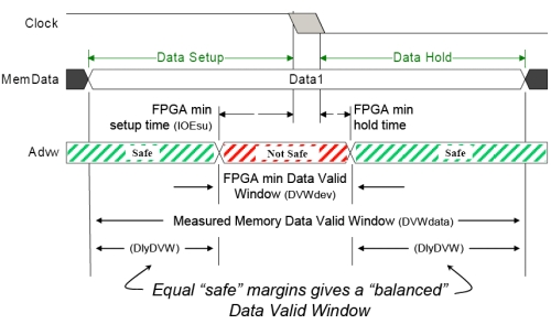 理想的解決辦法是為器件的建立和保持提供一個(gè)最大的安全空余,可以通過轉(zhuǎn)化平衡空余,為二者都提供相同的安全空余。為了平衡空余,我們?yōu)榻邮掌骷_定最低的有效數(shù)據(jù)窗口,在實(shí)際有效數(shù)據(jù)窗口的中心窗內(nèi)可以給我們的存儲(chǔ)器提供設(shè)計(jì)參數(shù)。
