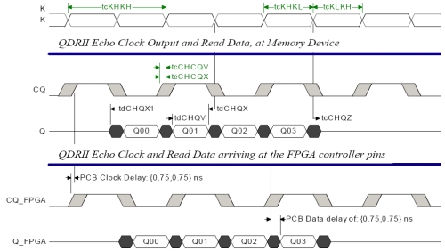 首先,我們使用TimingDesigner通過存儲(chǔ)器數(shù)據(jù)表為QDR SRAM創(chuàng)造一個(gè)圖表(圖4)。我們利用此圖確定存儲(chǔ)器與有效數(shù)據(jù)窗口中的時(shí)鐘和數(shù)據(jù)信號(hào)時(shí)序的關(guān)系。目的是精確定義存儲(chǔ)器的信號(hào)關(guān)系,并在PCB到FPGA的設(shè)計(jì)中傳遞這種關(guān)系。
