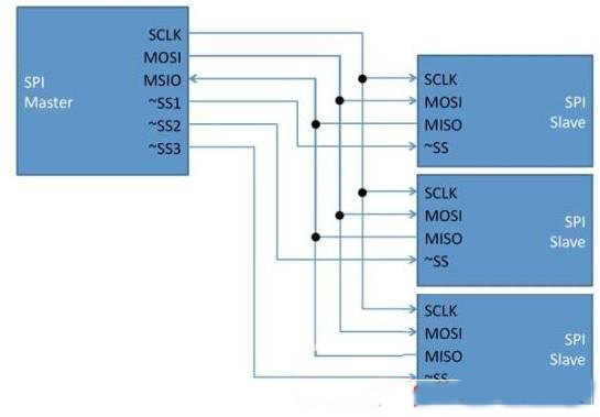 圖2 典型的三個(gè)從器件的SPI總線