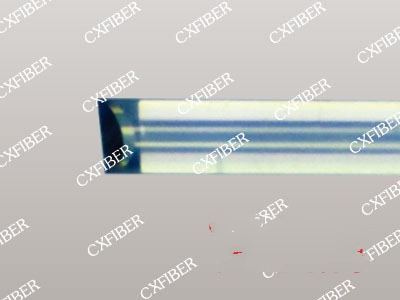 斜楔形透鏡是通過楚星自制的精密研磨設(shè)備,在光纖的端面研磨成斜楔形,后經(jīng)過特殊的加工手段在其尖端加工出光學(xué)微柱透鏡,從而達(dá)到將光纖光斑整形成為長條形,與PUMP激光器光斑形成匹配。