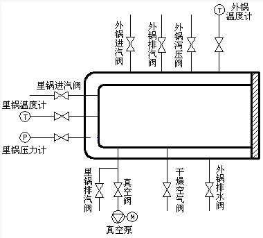 由上圖可見滅菌器的主體為一帶有夾套及密封門的高壓容器, 配有真空泵、真空閥、蒸汽閥等控制器件及溫度、壓力傳感器, 工作過程如圖2所示。