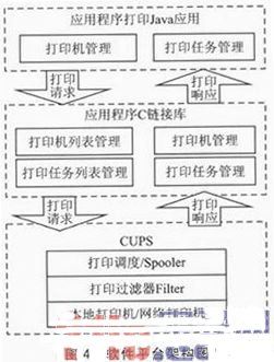 軟件平臺基于Android實現(xiàn),人機操作界面采用Java語言編寫,Java語言通過JNI訪問打印框架鏈接庫,再由打印鏈接庫完成與后臺打印服務程序的通信。整體實現(xiàn)遵循Linux系統(tǒng)下的CUPS標準,針對不同型號的打印機提供相應的CUPS打印驅(qū)動程序即可完成文件的打印。