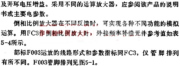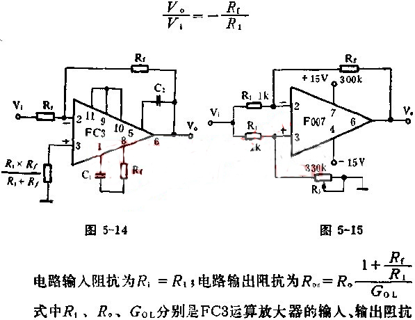 圖中所示是用中增益運放FC3組成的倒相比例放大器線路.倒相比例放大器就是使輸出信號與輸入信號相位相反.倒相比例放大器的增益取決于反饋比.即: