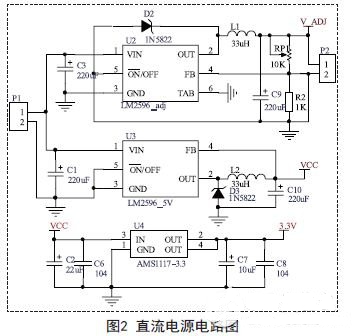 多功能電子焊接操作臺(tái)由排風(fēng)風(fēng)扇、LED照明燈、反射式光電開(kāi)關(guān)、直流電源輸出端子、液晶顯示屏、環(huán)境照度檢測(cè)傳感器和主控電路組成。通過(guò)外部電源適配器提供直流電源,通過(guò)調(diào)壓型LM2596和固定5V的LM2596提供可調(diào)直流電源和固定5V的直流電源,通過(guò)AMS1117-3.3穩(wěn)壓輸出3.3V電源給主控系統(tǒng)供電。