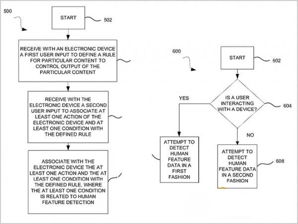 比如說,當一個成年人在看成年電影,另一個或多個成年人進入后,電影會正常播放,但如果孩子進入,電影就會立刻停止。此外,用戶還可以根據(jù)特定屬性分配權(quán)力,比如當老年人存在時自動增加音量。當老年人離開后,音量會恢復(fù)正常。用戶的聲音也會決定媒體播放的音量,當用戶離設(shè)備比較遠的時候,音量最自動增加。這項人類識別專利在2012年申請,發(fā)明人是Michael I. Ingrassia, Jr.和 Nathaniel Paine Hramits。