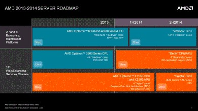 首先,采用32nm工藝制造的高性能系列“AMD Embedded R-Series”(處理器內(nèi)核為Piledriver)的后續(xù)產(chǎn)品有“Bald Eagle”和“Hierofalcon”兩個(gè)系列。其中,Bald Eagle配備x86系的處理器內(nèi)核“Steamroller”,最多配備4個(gè)處理器內(nèi)核,TDP(熱設(shè)計(jì)功耗)在35W以下。Bald Eagle包括MPU型產(chǎn)品和APU型產(chǎn)品,GPU內(nèi)核為“AMD Radeon HD9000 Series”,預(yù)定2014年上半年上市。