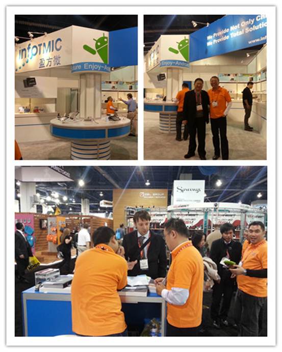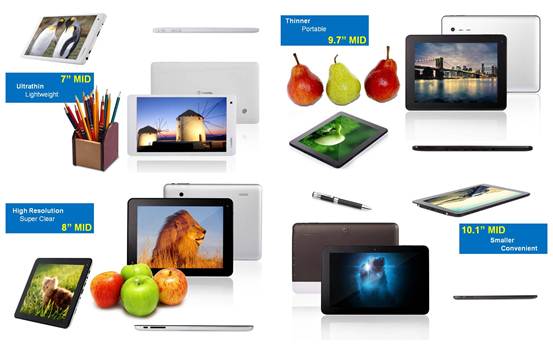 圖2:盈方微攜手合作伙伴在CES展示了各種屏幕尺寸的高性?xún)r(jià)比雙核平板電腦機(jī)型。