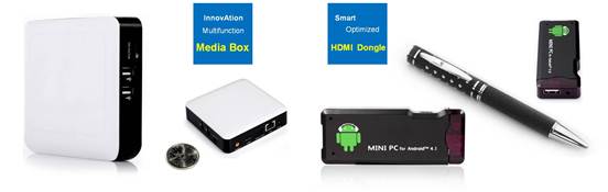 圖4:基于全功能雙核處理器iMAPx820的多功能Mediabox(左)和HDMIDougle(右)。