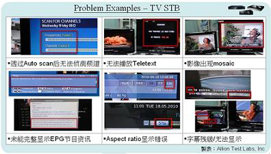 在測(cè)試電視機(jī)頂盒的過(guò)程中,我們發(fā)現(xiàn)其中一臺(tái)在經(jīng)過(guò)Auto Scan后,無(wú)法偵測(cè)到近八成的電視信號(hào),也就是說(shuō)使用者完全無(wú)法通過(guò)該機(jī)頂盒收看到這些頻道。此外,另一臺(tái)機(jī)頂盒經(jīng)過(guò)測(cè)試后發(fā)現(xiàn)至少九個(gè)錯(cuò)誤問(wèn)題,包括影像無(wú)法正確解碼出現(xiàn)殘破畫(huà)面、音訊播放錯(cuò)誤、EPG僅顯示部分訊息以及不能正確顯示鎖碼頻道的訊息標(biāo)示等等;僅有一臺(tái)機(jī)頂盒相較之下問(wèn)題較少。足見(jiàn)這三臺(tái)產(chǎn)品中有兩臺(tái)都有極大的瑕疵問(wèn)題,影響到其基本的品質(zhì)水準(zhǔn)。