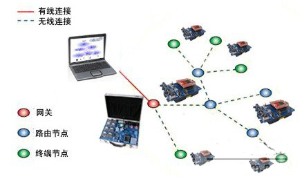 2.2 更加大型,高可靠性商業(yè)用途無線傳感器網(wǎng)絡(luò)成為可能。目前以8051為內(nèi)核ZigBee無線單片機(jī),在家庭自動化,遙控,節(jié)能等應(yīng)用中,是很好的選擇,但是對于大型商業(yè)樓宇的無線傳感器網(wǎng)絡(luò)和大型工廠和農(nóng)業(yè)應(yīng)用等,需要更大型的組網(wǎng)功能,使用32微ARM強(qiáng)大的處理能力和網(wǎng)絡(luò)控制能力,就顯得非常必要。32位內(nèi)核無線單片機(jī)的上市,必將加速這方面的應(yīng)用(圖3是一個典型的無線傳感器網(wǎng)絡(luò),節(jié)點采用成都無線龍通訊的產(chǎn)品MC13224 ZigBee PRO 傳感器節(jié)點)。