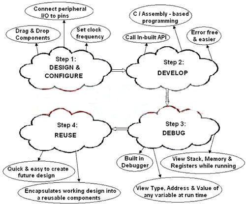 嵌入式系統(tǒng)日益復雜,幾乎在任何情況下都需要可編程性。為此,設計人員需要工具來應對這種困難的局面,同時提供用戶友好型環(huán)境來開發(fā)應用。雖然我們有一些SOC工具的市場,但我們并不完全了解這些工具的功能。此外,工具還必須能夠最大限度地發(fā)揮產品的特性潛力。為了說明這一點,我們不妨舉一個采用復雜架構芯片的例子,在單個芯片上集成了幾乎所有的模擬和數字可編程外設。我們或許會發(fā)現,閱讀和了解相關的配置寄存器以及使用器件相關的其它底層信息可能比較復雜,因此我們需要一款直觀易用的系統(tǒng)設計工具把底層信息隱藏起來,讓我們更方便地集中了解系統(tǒng)應用。