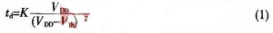 其中,K是一個與器件和工藝有關(guān)的常數(shù),Vth是MOS器件的閾值電壓。當VDD大于Vth時,td可看作與VDD成反比。