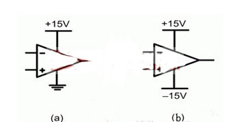 給一個運算放大器供電有兩種常見方法。第一種也是最簡單的一種方法是使用一個單一正電源,如圖 1 (a) 所示。第二種方法是使用一個分離(雙)電源(如圖1 (b) 所示),其同時具有一個正電壓和一個負電壓。這種分離電源在許多模擬電路中都非常有用,因為它允許包括零電壓電位的輸入信號或者在正與負之間搖擺的輸入信號。