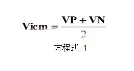 不管使用哪一種方法,輸入共模電壓都由電源電壓決定。輸入共模電壓只是兩個電壓的算術平均數(shù)。方程式 1 可用于計算輸入共模電壓,其中 VP 為正電壓軌的值,而 VN 為負電壓軌的值。