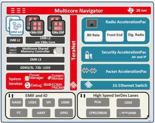 圖1:TI基帶SoC(基于KeyStone II、具有集成型數(shù)字無線電功能)方框圖