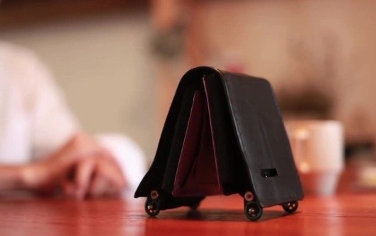 從外表來看,逃跑錢包和普通錢包相差不大,只是在錢包的四個(gè)角各有一個(gè)小輪子。但是,它內(nèi)置控制、傳感器和無線傳輸系統(tǒng),不僅能夠移動(dòng),而且能自動(dòng)躲避障礙物。
