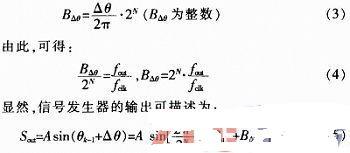 對(duì)于正弦信號(hào)發(fā)生器,它的輸出可以用下式來描述:Sout=Asinωt=Asin(2πfoutt) (1)