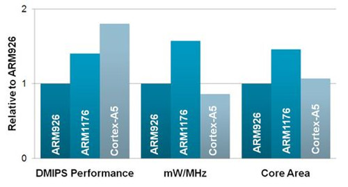 Cortex-A5 處理器可為現(xiàn)有的 ARM926EJ-S 和 ARM1176JZ-S處理器設(shè)計提供高價值的遷移途徑。它可實現(xiàn)比 ARM1176JZ-S更好的性能,比 ARM926EJ-S 更好的功效和能效,以及 100% 的 Cortex-A 兼容性。