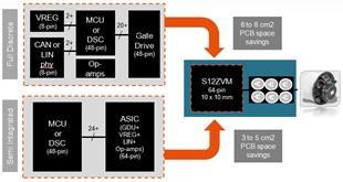 對于汽車用BLDC控制系統(tǒng)來說,希望能做到PCB尺寸小,BOM成本低以及簡單可靠,低功耗等特點(diǎn),針對這系列的需求,飛思卡爾半導(dǎo)體推出針對汽車三相無刷電機(jī)的單芯片解決方案S12ZVM家族。S12ZVM是目前市場上集成度最高的無刷直流(BLDC)電機(jī)控制解決方案,有助于加快從直流(DC)到BLDC電機(jī)的過渡。