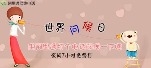 用阿里通網(wǎng)絡(luò)電話打長(zhǎng)途,比用傳統(tǒng)電話打市話還要便宜。當(dāng)今社會(huì)流行 “打工潮”和“出國(guó)潮”,人們的距離在不斷拿大,聯(lián)系也變得越來(lái)越少。世界問(wèn)候日到了,不妨借著這個(gè)好時(shí)機(jī),給你關(guān)心的人或者久未聯(lián)系的人打個(gè)電話,送上一份溫暖和牽掛吧。