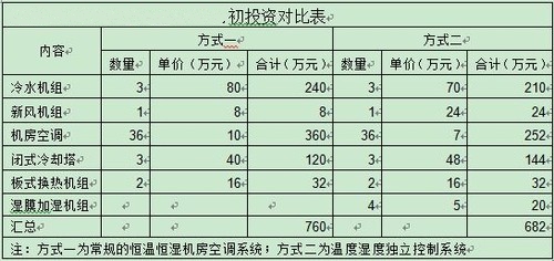 根據(jù)附表1,可以明確溫度濕度獨(dú)立控制系統(tǒng)空調(diào)系統(tǒng)的投資比常規(guī)恒溫恒濕空調(diào)系統(tǒng)低。