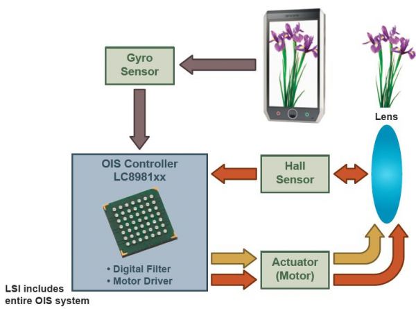 圖3. 安森美半導(dǎo)體LC8981xx系列光學(xué)影像穩(wěn)定控制及驅(qū)動(dòng)器工作示意圖。