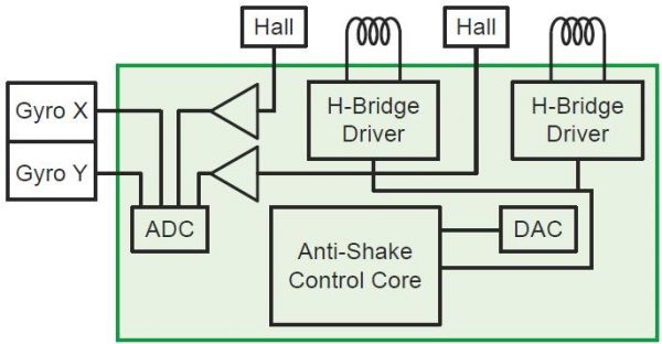 此外,獨(dú)特的OIS方法還提供大幅改進(jìn)的快門(mén)速度,優(yōu)化曝光補(bǔ)償達(dá)3級(jí),遠(yuǎn)高于使用的其它方法。OIS方案通常由一些主要元件構(gòu)成,包括確定焦距的影像傳感器、補(bǔ)償運(yùn)動(dòng)的陀螺儀及光學(xué)影像穩(wěn)定等。這些元件可以組裝在較小的空間中,采用某種標(biāo)準(zhǔn)設(shè)計(jì)布線。