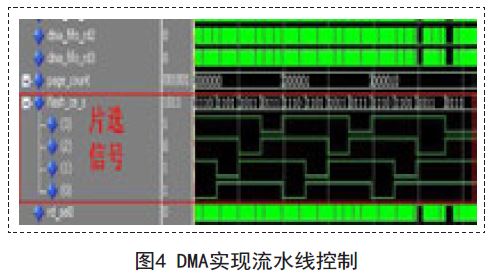 為了實現(xiàn)流水線的存儲方式,本文也用DMA控制器實現(xiàn)了對FLASH的片選。如圖4所示,圖中flash_ce_s代表每列flash的片選信號,其中低電平代表對flash加載有效,從圖中可以看出DMA控制器對flash依次加載,實現(xiàn)了流水線的操作流程。
