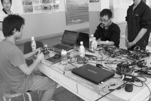 長春理工大學(xué)的校園內(nèi)有一個大學(xué)生電子學(xué)會,學(xué)會注冊會員有600多人。大學(xué)生電子學(xué)會擁有一個實(shí)驗(yàn)室,實(shí)驗(yàn)室里堆滿了各種電子元件,每天課后,學(xué)生們都會來到這里做實(shí)驗(yàn)。