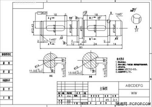 下圖是一個(gè)機(jī)械設(shè)計(jì)的實(shí)例(如圖1),該圖包括的元素很多,有圖框、軸設(shè)計(jì)、中心線繪制、智能標(biāo)注等。如果采用普通的CAD軟件進(jìn)行繪制,大致需要2小時(shí)才能完成,而通過浩辰CAD機(jī)械2013繪制,可以在半小時(shí)左右完成。那么,浩辰CAD機(jī)械2013是如何達(dá)到這一效果的呢?