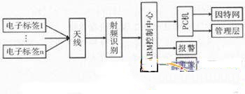 電子標簽有紙片型、卡片型等,形狀可根據(jù)要求設(shè)計。當(dāng)貼有電子標簽的物體靠近讀卡器時,經(jīng)射頻識別系統(tǒng)讀出信息碼,由ARM控制器進行信息處理并作出相應(yīng)的控制。通過網(wǎng)絡(luò)通信將信息傳至上位機,由上層管理軟件對數(shù)據(jù)進行存儲和管理。若連接互聯(lián)網(wǎng)還可追溯材料來源信息。智能化管理系統(tǒng)整體結(jié)構(gòu)如圖1所示。