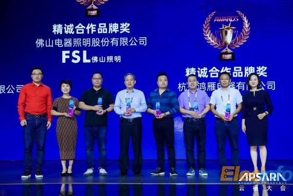 佛山照明榮獲天貓精靈精誠合作品牌獎(jiǎng),總經(jīng)理劉醒明代表企業(yè)領(lǐng)獎(jiǎng)(左四)